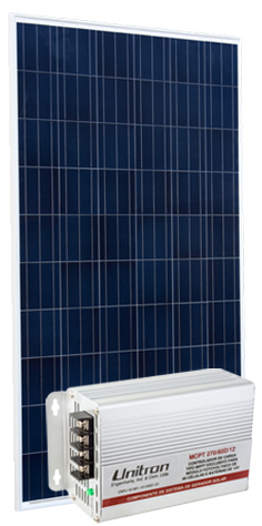 Kit Painel Fotovoltaico 250wp + MCPT Mesmos benefícios dos módulos solares 250wp e mais: - Próprio para bateria chumbo-ácida de 12 volts ventilada, sem manutenção, ou de eletrólito absorvido - Controla carga e flutuação Projetado para utilização com módulos de 60 células, até 270W - Dispõe de proteção contra sobrecorrente ou curto-circuito (fusível automotivo) interno.