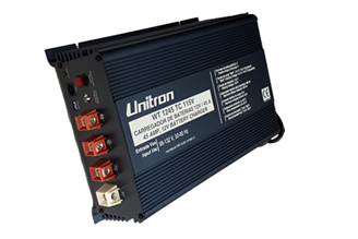 Os Carregadores Unitron TB e TC trabalham em tensões de entrada de 127 ou 240 Vca, 50 ou 60Hz, e fornecem corrente de até 45 Ampères para baterias de 12 V. Apresentam alta eficiência, da ordem de 85%. Dispõem de proteções contra inversão de polaridade, sobrecarga, curto-circuito e superaquecimento.
